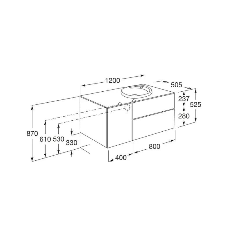 • Размери / Умивалник и мебел / Дължина: 1200 mm
