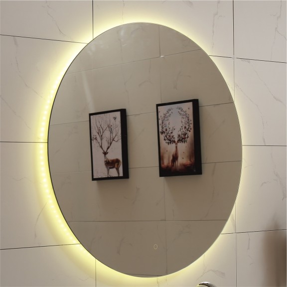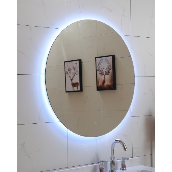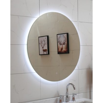 Огледало за баня с вградено LED осветление „Touch screen“ Код: ICL 1495 Серия: ДЕА С кръгла форма Размери: 80 см. IP: 44 LM: 1296 МОЩНОСТ: 15W ЦВЕТНА ТЕМПЕРАТУРА / КЕЛВИН/: 3000К ; 4000К ; 6500К