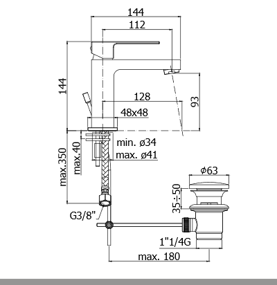 Смесителят разполага с изпразнител.
