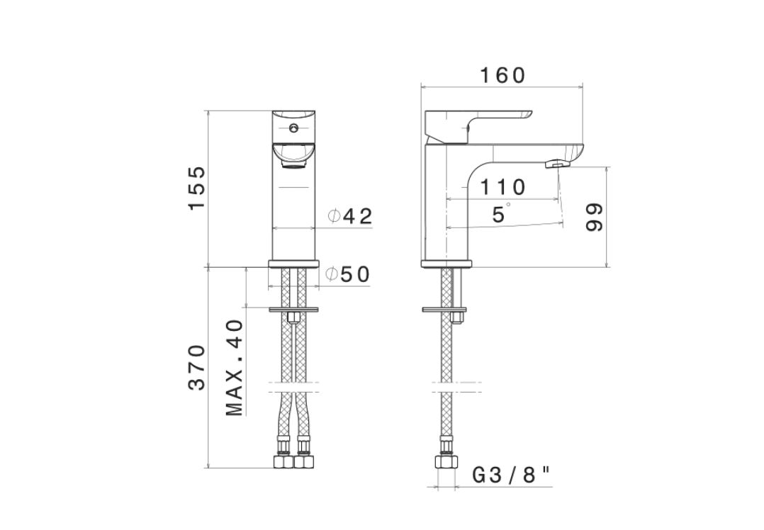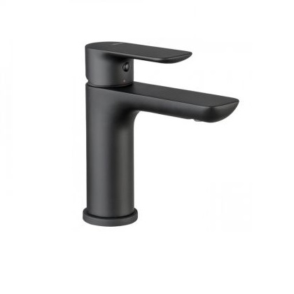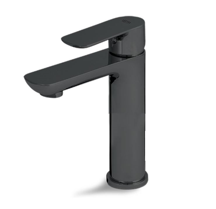 Eдноръкохватков смесител стоящ за мивка Код: V14011 F0.202 Керамичен затварящ механизъм. Без изпразнител. Материал: Месинг с покритие черен мат. Метална ръкохватка Меки връзки ⅜“ Гаранция: 5 години Производител: Vema/Италия