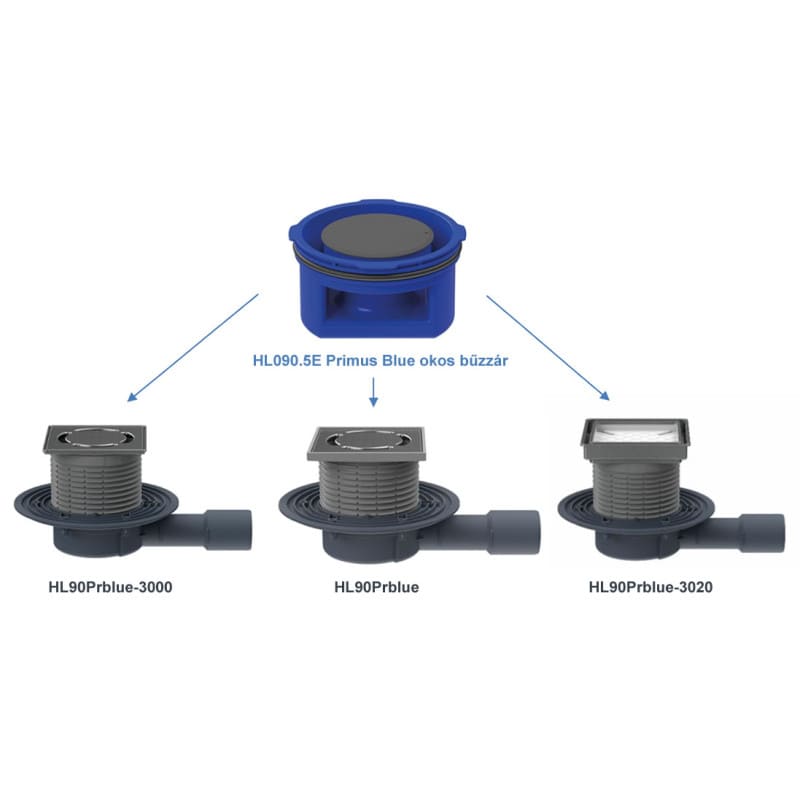 Подов сифон DN40/50 странично оттичане, с фланец за хидроизолацията, воден затвор PRIMUS BLUE.