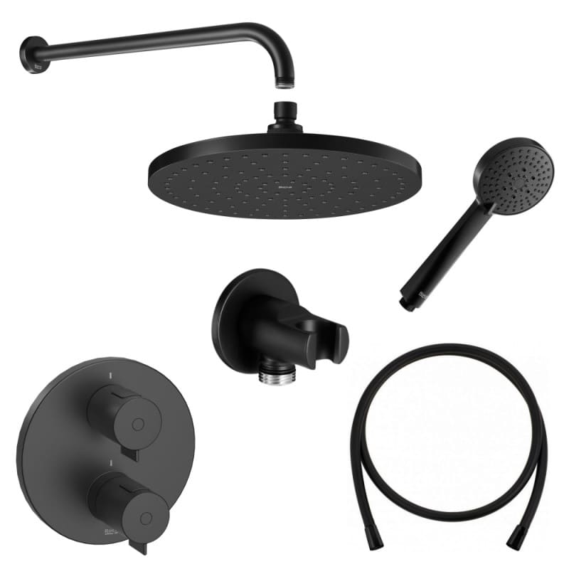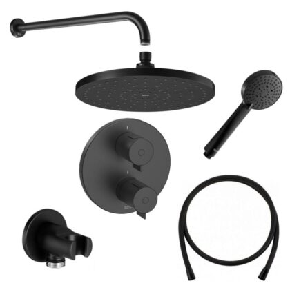 AQUA ROUND извод за вода с държач за душ слушалка, черен мат (A5B5250NB0)