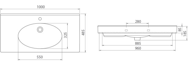 84400 Порцеланова мивка С отвор за смесител Размери: 100 x 48.5 см Монтаж: върху шкаф или на стена Цвят: Бял гланц Производител: Turkuaz Seramik/Турция *Цена само за мивката *Доставката не е включена в цената